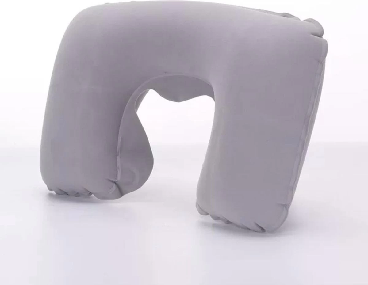 Opblaasbare nekkussen voor in de auto, trein of vliegtuig. Dit opblaasbare nekkussen wordt geleverd in de kleur blauw – grijs of zwart en is inclusief opberghoesje. Formaat nekkussentjes: 34 x 23 cm.
